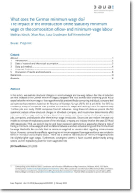 Die Ergebnisse zeigen eine bis zu 3,6 Prozentpunkte stärkere Reduzierung des durchschnittlichen Gender Pay Gap der Stundenlöhne in vom Mindestlohn betroffenen Betrieben als in nicht betroffenen Betrieben. Die Stundenlohneffekte des Mindestlohns auf Frauen und Männer im Niedriglohnbereich fielen jedoch gleich hoch aus. Zudem ergäbe sich keine Verringerung des Gender Pay Gap durch den Mindestlohn, wenn Frauen und Männer gleich auf Vollzeit-, Teilzeit- und geringfügige Beschäftigung verteilt wären. Der Gender Time Gap verringerte sich in vom Mindestlohn betroffenen Betrieben im Durchschnitt um rund 2,4 Prozentpunkte und für Beschäftigte im Niedriglohnbereich um rund 3,9 Prozentpunkte stärker als in nicht betroffenen Betrieben. Durch den Mindestlohn kam es zu einer deutlichen Verringerung des durchschnittlichen Gender Earnings Gap der monatlichen Bruttoverdienste. Dieser reduzierte sich in vom Mindestlohn betroffenen Betrieben bei Betrachtung aller Beschäftigten um bis zu 6,1 Prozentpunkte und bei Niedriglohnbeschäftigten um bis zu 4,6 Prozentpunkte stärker als in nicht betroffenen Betrieben.