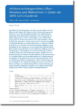 Die Publikation behandelt den Einfluss des Lüftens von Innenräumen und praxistypischer Umsetzungen auf eine mögliche Virenbelastung der Raumluft. Daraus abgeleitete betriebliche Schutzmaßnahmen für den Zeitraum der Corona-Epidemie werden erläutert und eingeordnet. Betrachtet werden insbesondere die Fensterlüftung, Raumlufttechnische Anlagen (RLT-Anlagen) und mobile Raumluftreiniger.